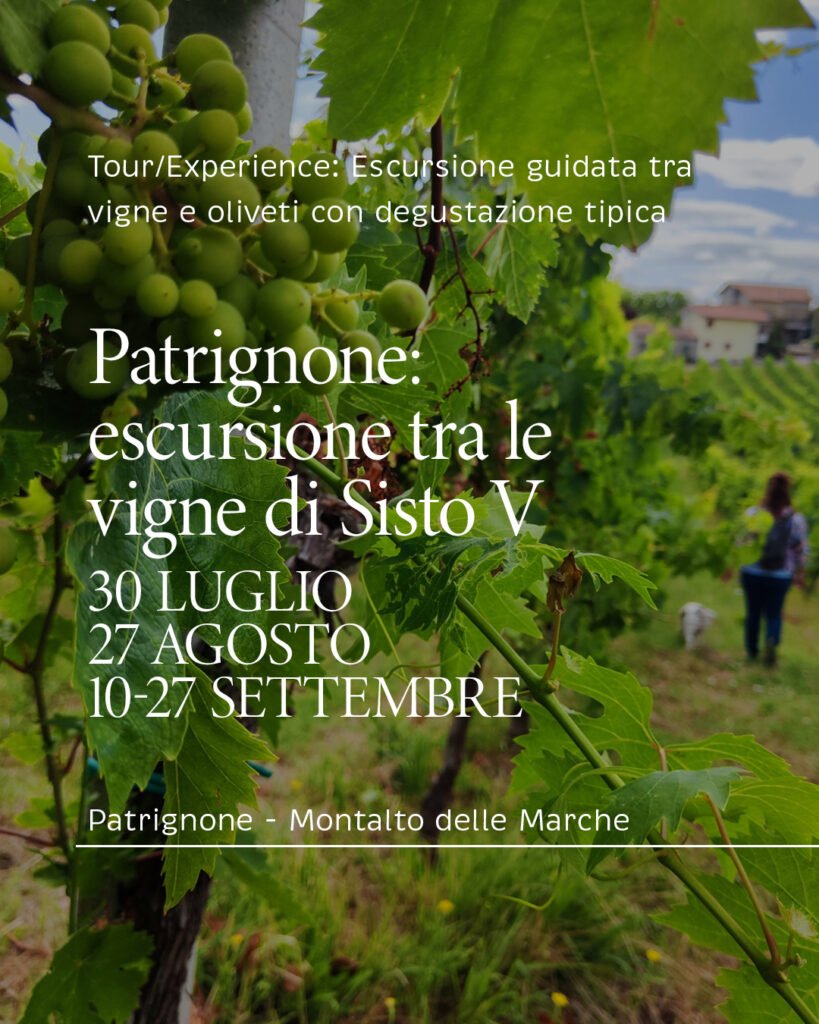 Un’escursione guidata tra filari e oliveti alla scoperta di Sisto V e della “fojetta”. Scopriremo aneddoti curiosi, usi antichi e il legame profondo tra vino, terra e tradizione.