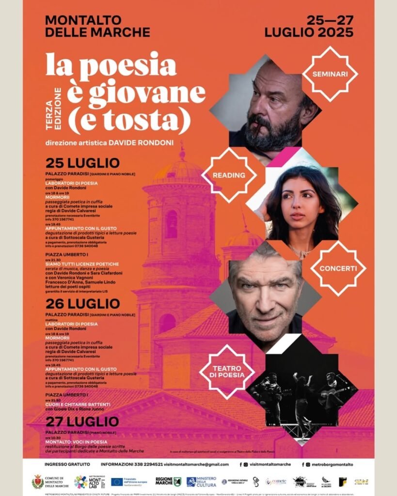 le terza edizione del Festival della Poesia a Montalto delle Marche dal 25 al 27 luglio.
